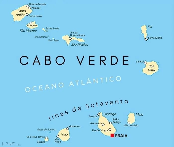 As ilhas se dividem em dois grupos: o barlavento e o sotavento. Do grupo barlavento fazem parte as ilhas de Santo Antão , Sao Vicente, Santa Luzia, São Nicolau, Sal e Boa Vista. E do sotavento e constituido pelas ilhas de Maio, Santiago, Fogo e Brava.